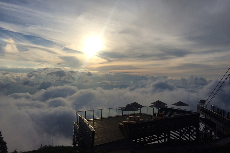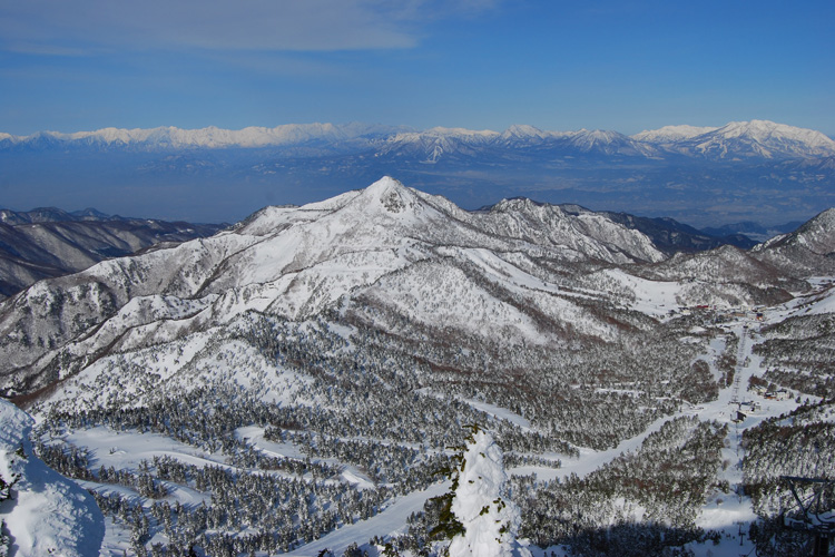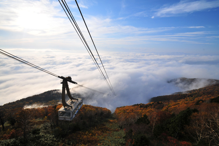 ウインターシーズンはスキーで賑わう竜王スキーパークには世界最大級166人乗りのロープウェイがあります。グリーンシーズンは山頂にある標高1,770mの急斜面に建てられたソラテラスからの眺めが最高。運が良ければ眼下に雲海が拡がる絶景を見ることも。