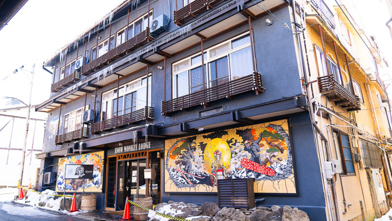 湯田中駅裏にある楓の湯も冬の装い